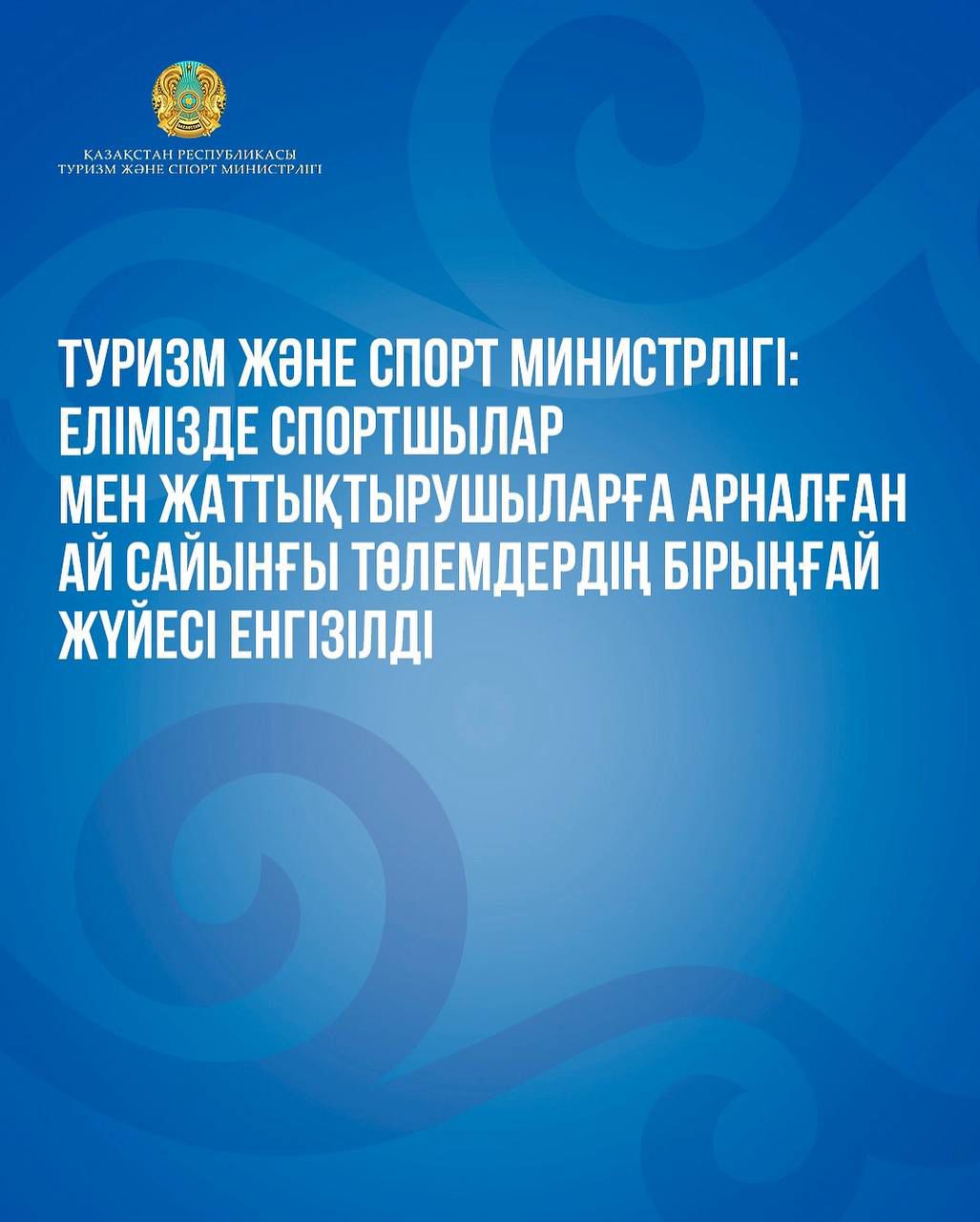 Туризм және спорт министрлігі: елімізде спортшылар мен жаттықтырушыларға арналған ай сайынғы төлемдердің бірыңғай жүйесі енгізілді