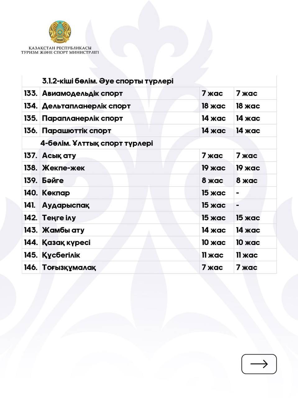 Жас ерекшеліктеріне байланысты қойылған шектеулер жөніндегі толық ақпарат жоғарыдағы кестеде көрсетілген.