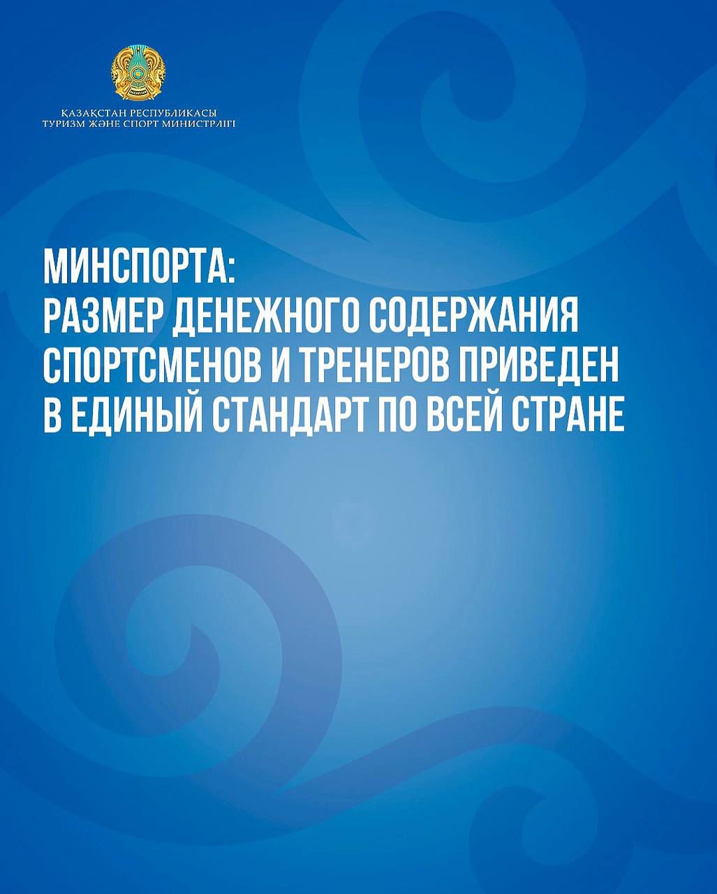 Минспорта: размер денежного содержания спортсменов и тренеров приведен в единый стандарт по всей стране