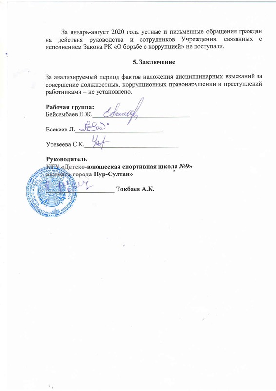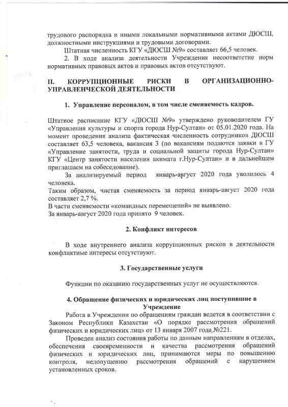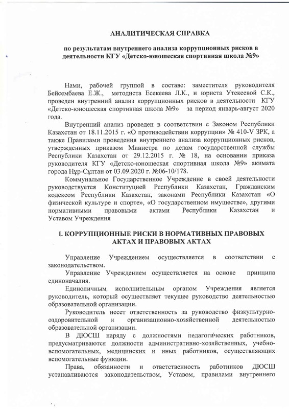 Антикоррупционный стандарт КГУ "Детско-юношеская спортивная школа №9" акимата города Нур-Султан